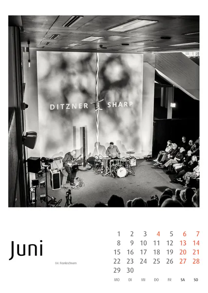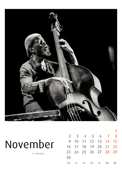 Ein Schwerpunkt der Jazzkalender 2027 liegt auf fotografischen Dokumentationen bedeutender Jazzfestivals. Die Motive entstehen im Live-Kontext auf der Bühne, im Zusammenspiel von Licht, Bewegung und Improvisation.