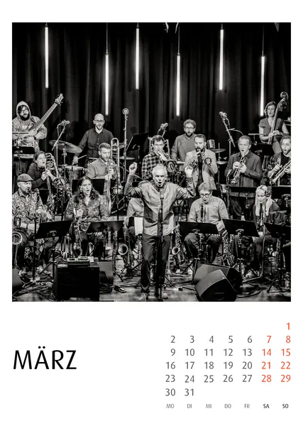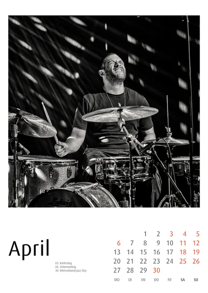 Die Jazzkalender 2027 basieren auf konsequenter Schwarzweiß-Fotografie. Reduktion auf Ausdruck, Gestik, Licht und Struktur prägt die Bildsprache.